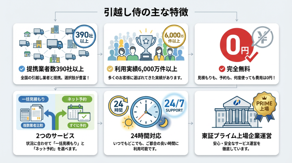 まずは、引越し侍がどのようなサービスなのか、基本的な情報から確認していきましょう。